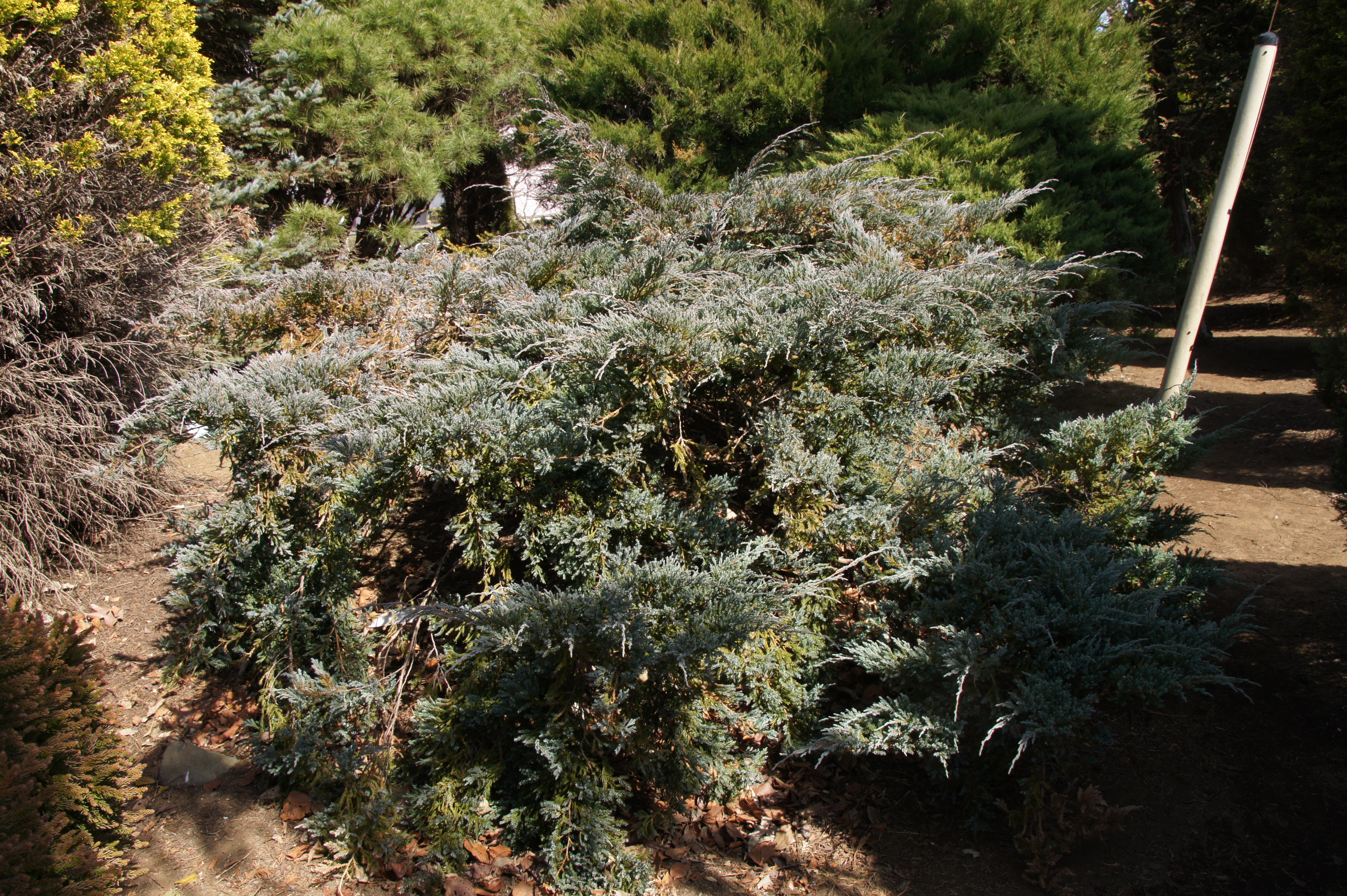 学名:Juniperus squamata 'Blue Carpet' ヒノキ科ビャクシン属 分類:常緑低木 樹高:150cm 見頃:通年(葉) 特徴:匍匐性のコニファーの代表的な品種。 品種名のようにカーペットを敷いたようになる。葉は灰青色から青緑色。