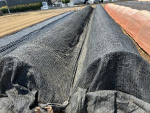 写真2 播種直後の土壌が乾燥してしまうのを防ぐためにネットをかけた様子